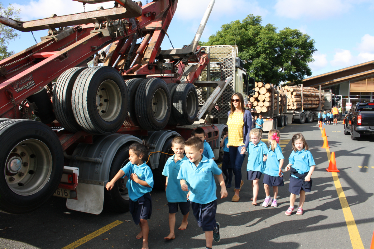 Aa BackWe sent a couple of logging trucks and staff along to Kerikeri Primary in early May as part of a road safety campaign which is touring Northland schools.